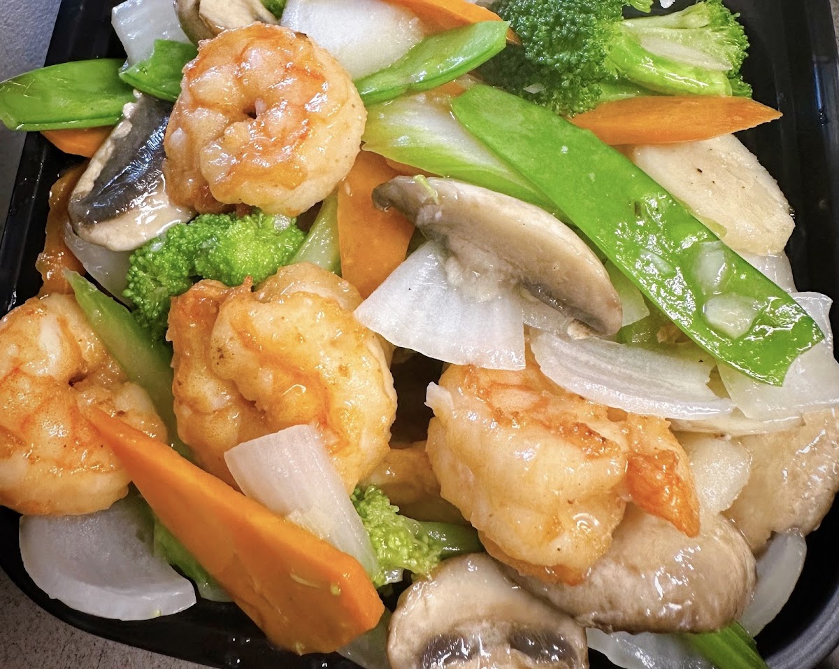 BBQ pork, chicken, beef, shrimp and vegetable.
